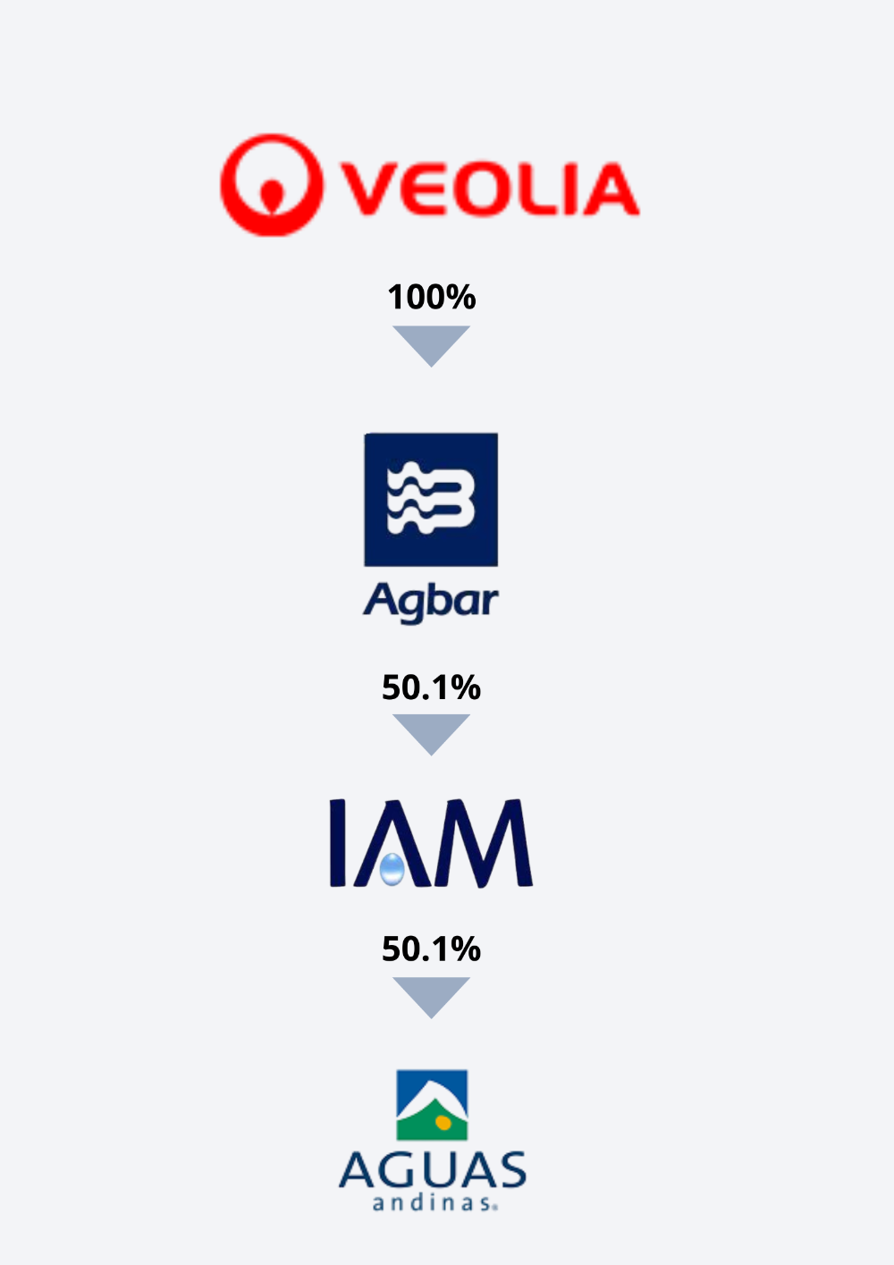Veolia Group is the indirect controlling company of Sociedad General de Aguas de Barcelona (Agbar), which is in turn the controlling shareholder of Aguas Andinas, through ownership of 50.1% of the assets of Inversiones Aguas Metropolitanas S.A. (IAM), majority shareholder with 50.1% of the titles of Aguas Andinas and its subsidiaries.