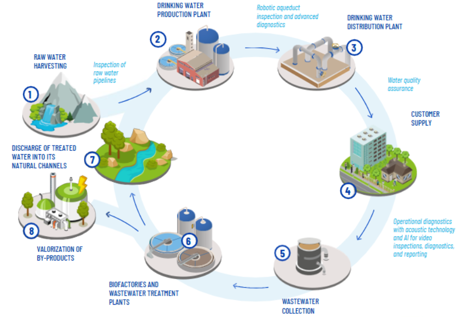 The regulated companies of the Aguas Group manage the whole water cycle, including the catchment of raw water; water production, transportation and distribution; and the collection, treatment and final disposal of sewage.