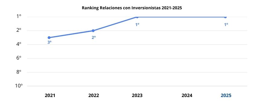 Este reconoce la excelencia en la divulgación pública de información al público inversionista, así como la disposición y el profesionalismo de la empresa en su interacción con los agentes claves del mercado.