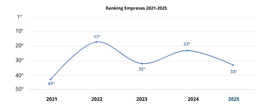 Aguas Andians es una empresa destacada en el ranking MERCO Responsabilidad ESG Chile, mostrando una mejora constante en su reputación corporativa en los ámbitos Ambiental, Social y de Gobernanza (ESG), ubicándose en el puesto 23 en el ranking 2024, lo que subraya su compromiso con la sostenibilidad y gestión responsable, siendo reconocida por expertos y stakeholders.
